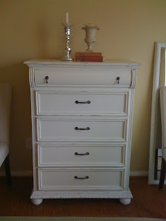 #1 - Cream colored Waterfall Dresser with oil rubbed bronze knobs. I think it is so pretty!! It is so classic and would provide GREAT storage!! Here are the pictures that we have listed for it...Does it need better (staged) pictures??